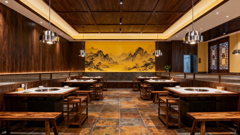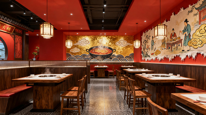 火鍋店的裝修風格直接反映品牌的定位和調性。“大氣”的裝修(通常表現為空間開闊、材質考究、設計協調、細節精致)能向顧客傳遞??“品牌有實力、品質有保障”??的信號。